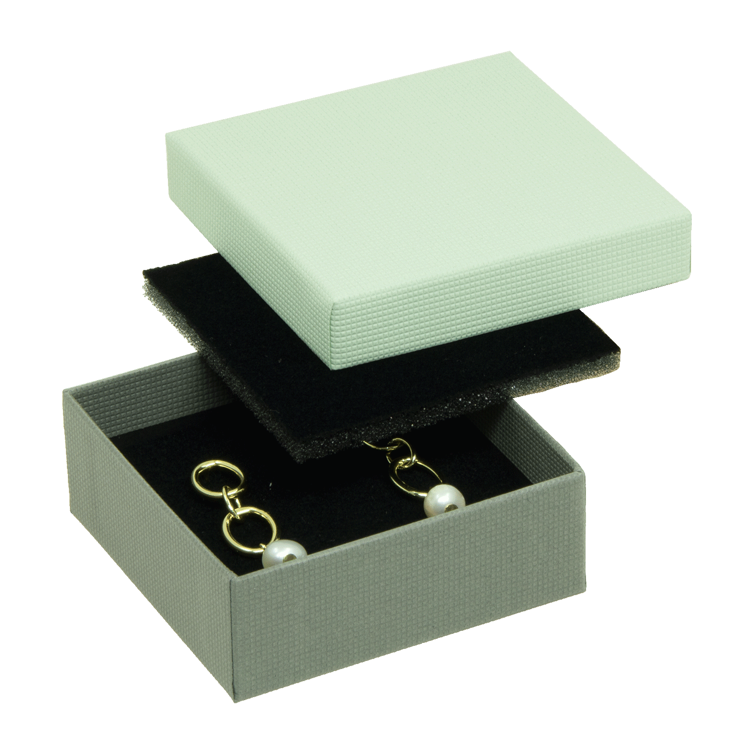 La Boîte à bijoux de la série 0135 PICOT en vert pastel/gris est certifiée FSC® et fabriquée en Allemagne. Elle fait partie de notre marque durable Green PACK by LESER. Avec des dimensions de 60 x 60 x 22 mm, elle offre de la place pour des pendentifs et des boucles d'oreilles. À l'intérieur se trouve un insert en mousse floquée de couleur noire. Cette boîte peut être personnalisée avec un marquage à chaud en or, argent, noir ou presque toute couleur souhaitée. Des marquages multicolores sont également possibles moyennant un supplément. Offrez à vos bijoux un écrin élégant et respectueux de l'environnement, qui est non seulement esthétiquement attrayant mais aussi produit de manière durable. Idéal pour les détaillants en bijouterie, orfèvres et marques de bijoux qui misent sur la qualité et l'esthétique.